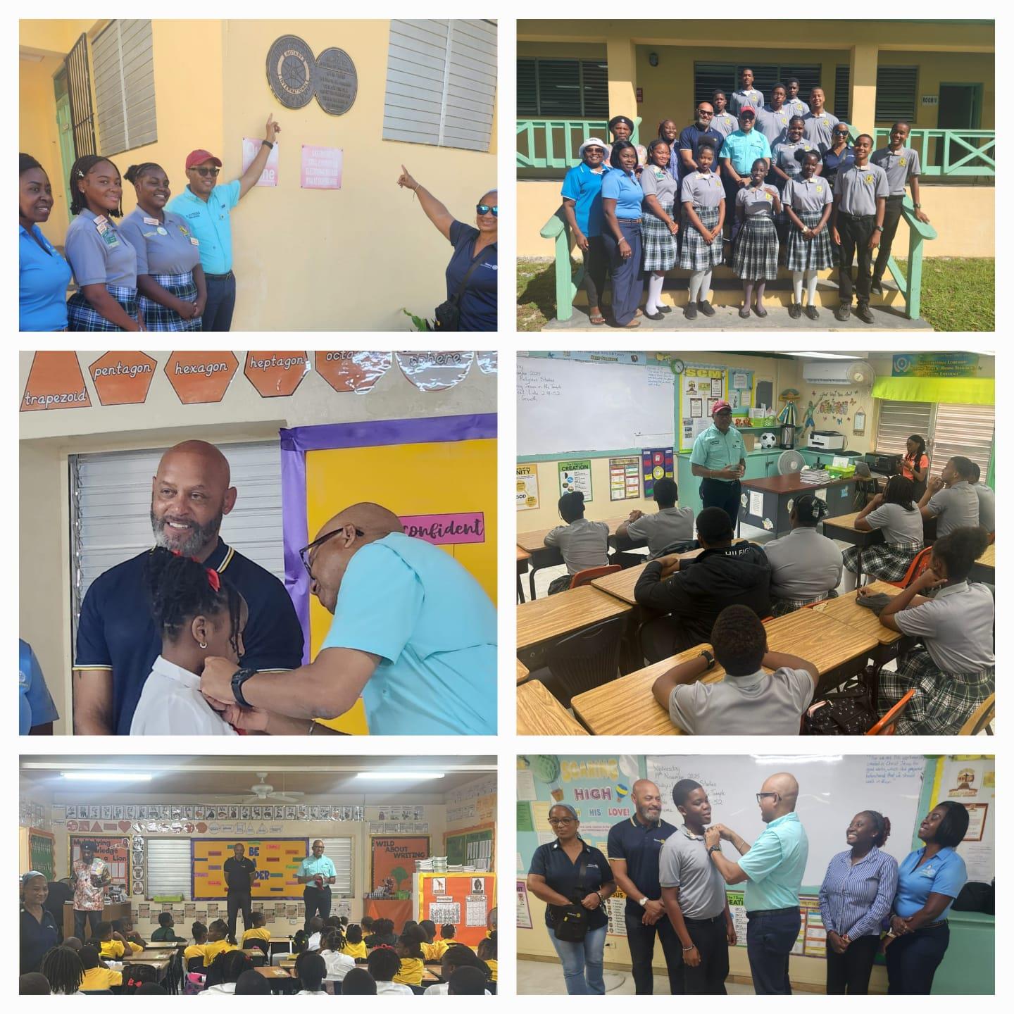The Earlyact Club of Emily G Petty Primary School in Governor’s Harbour, and the Central Eleuthera High School Interact Club, Palmetto Point Eleuthera, welcomed District Governor Bill Aiken, who was accompanied by Assistant Governor Lionel Haven, President @Leahnora Knowles, Immediate Past President @Jacquie Gibson and other leaders of our club. Theleadership team of these 2 vibrant groups of young people were proudly pinned by DG Bill