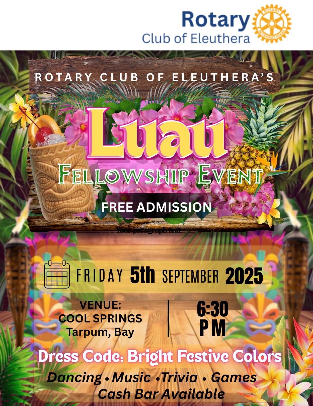 It was an exciting time for members and guests on Friday, September 05, 2025, when the club hosted its first fellowship for the Rotary year, The theme was Hawaiian ‘Luau, the cuisine, dress code and decor reflected the same.