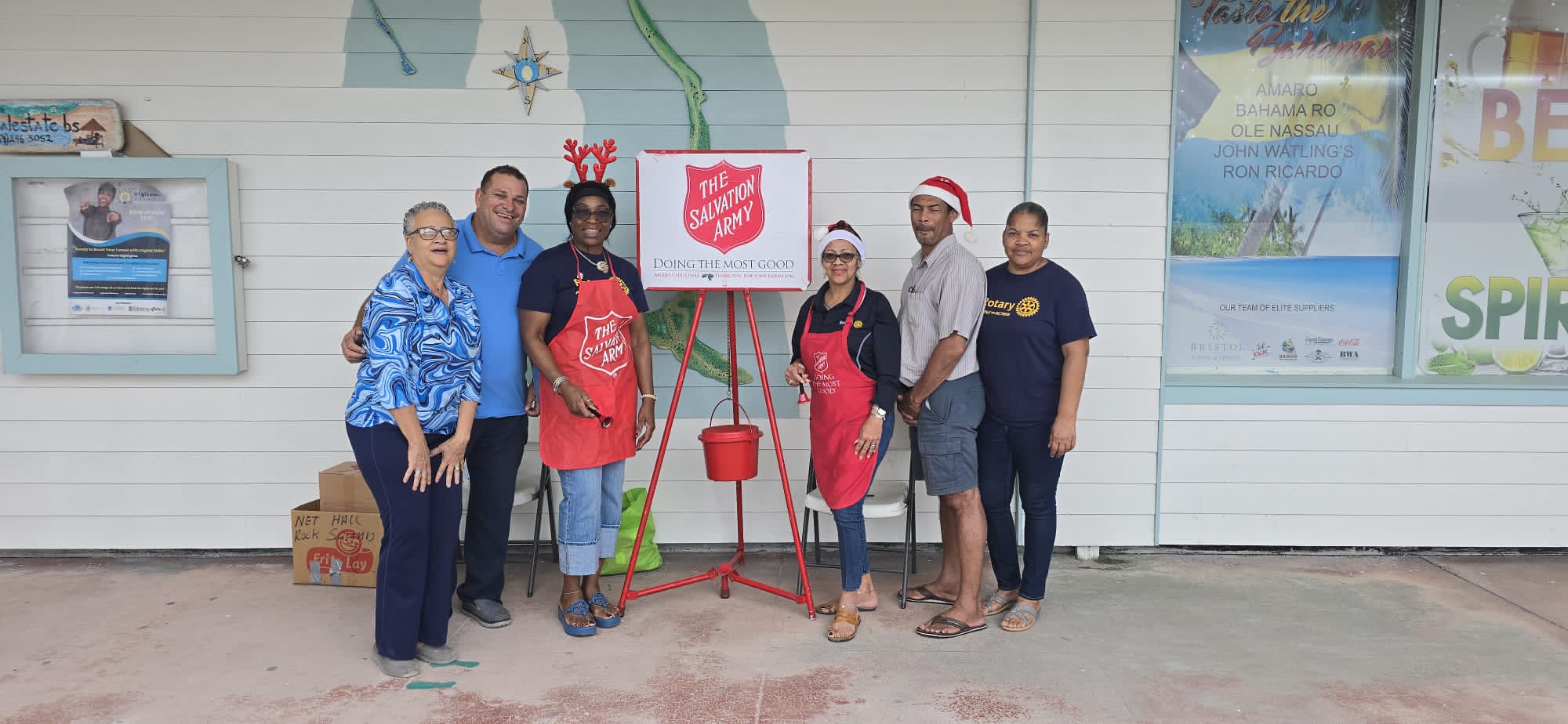 The Rotary Club of Eleuthera partnered with The Salvation Army, with Kettling at the Rock Sound Supermarket, RockSound, Eleuthera. Well-known Bahamian Singer 'Nita' stopped by and supported the cause. The donations received from kettling will be used to purchase food parcel for the underprivileged in the local communities this Christmas Season