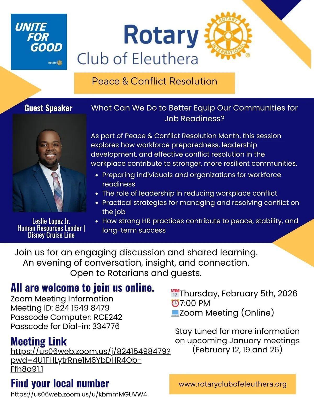 As Rotarians we all aspire to see a world in which Peace and Conflict Prevention thrive, and though it remains an aspirational goal, we celebrate Peace and Conflict Prevention in the month of February on the Rotary calendar.