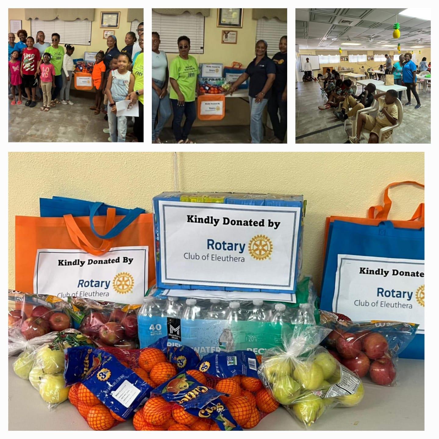 The Rotary Club of Eleuthera (RCE) promoted and supported Maternal & Child Health, Rotary's focus for the month of July by providing SPACES Eleuthera Camp with fruits, juice and water for the campers. RCE also collaborated with the Public Antenatal Clinic and provided wipes, diapers and baby clothing to five (5) expecting/new mothers in need.
