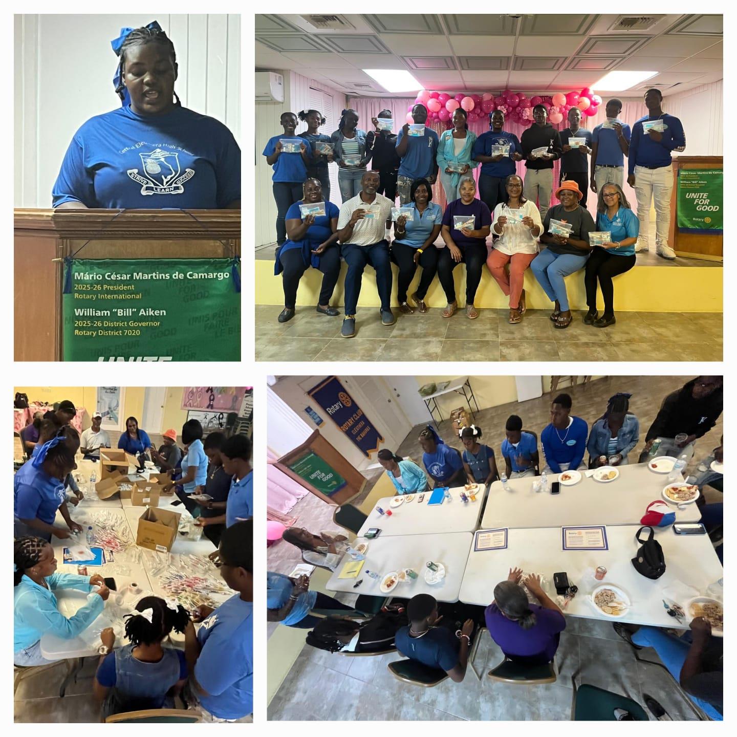 The Rotary Club of Eleuthera celebrated Interact Week observed Nov. 02 - 08 with members of the Interact Club of Central Eleuthera High School (CEHS). The Interact and is led by President Baldeisha Johnson and team. Rotarians and Interactors, worked together to prepare over one hundred (100) hygiene kits to be distributed to public school children in South Eleuthera.